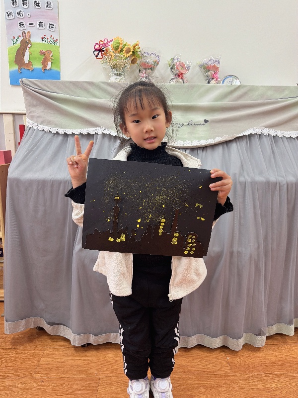 美术——夜空下的城市:新乡市城建幼儿园大二班