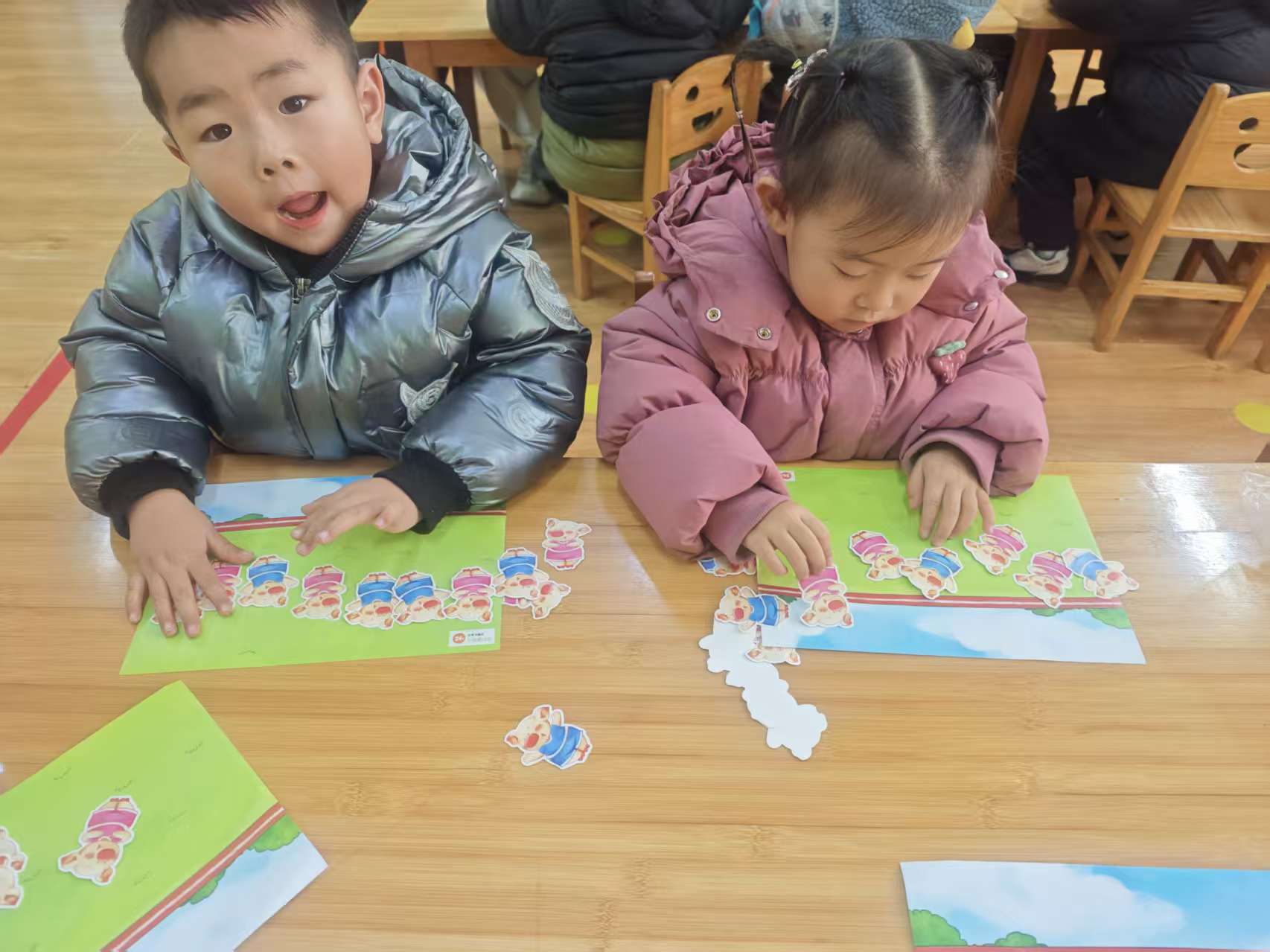 今天老师带我们一起进行了数学活动《小猪爱运动》,爸爸妈妈快来看看我们的操作吧!