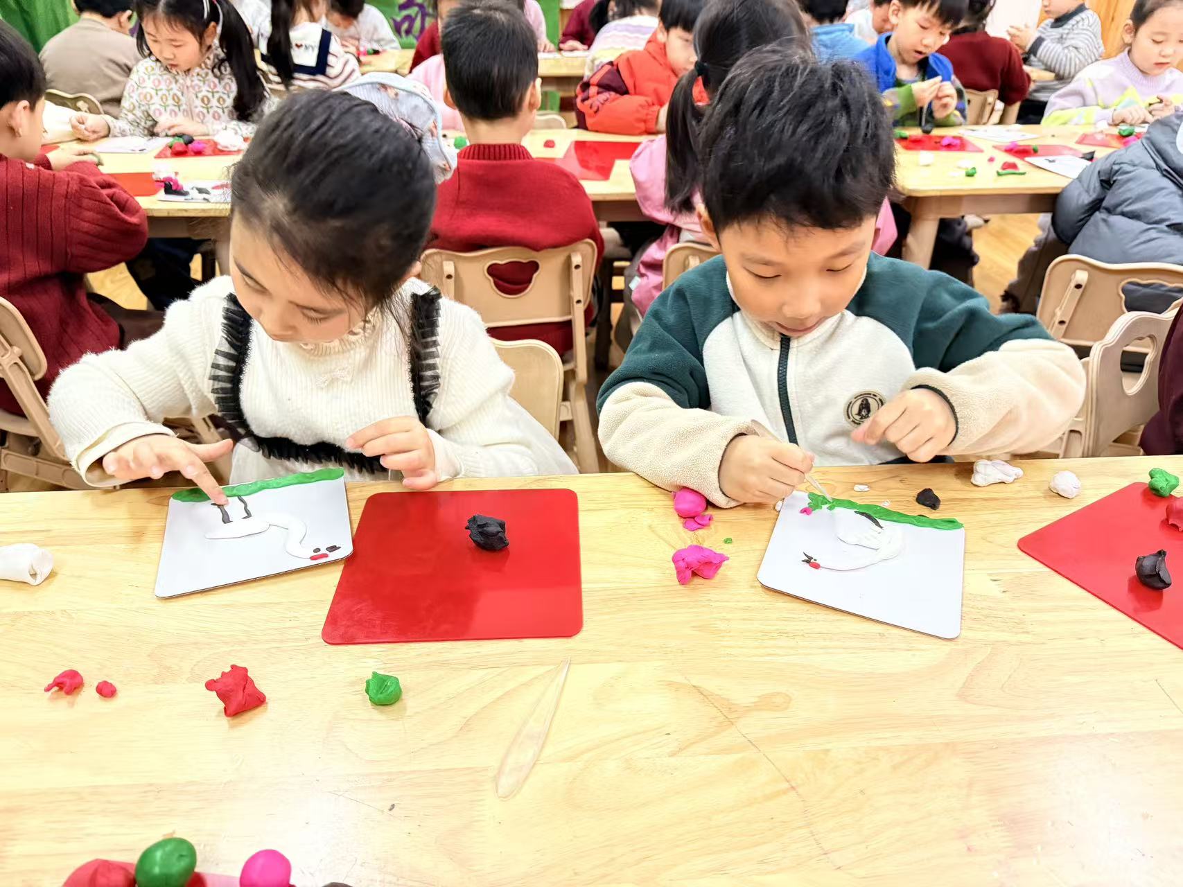 今天的面塑课上孩子们脑洞大开,他们做出的小火车形式各异且惟妙惟肖,一辆辆小火车在各自的轨道上忙碌着……(面塑即培养创新能力又锻炼手眼协调能力)